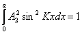 Hệ số A2 có thể tìm được bằng cách dùng điều kiện biên chuẩn hóa được cho trong phương trình (2.18) là . Vì hàm sóng là hàm thực nên ψ(x)=ψ*(x). Thế hàm sóng vào phương trình (2.18) chúng ta có