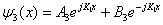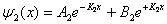Hàm sóng ψ2 phải xác định khi x≥0. Điều đó cũng có nghĩa là cho dù x tiến đến vô cùng thì ψ2 cũng phải xác định. Nhưng khi thế x=∞ vào biểu thức của ψ2 trong (2.43) thì số hạng thứ hai sẽ bằng vô cùng, dẫn đến cả hàm sóng cũng bằng vô cùng. Muốn điều này không xảy ra thì hệ số B2 phải bằng 0. Hàm sóng lúc này được viết là