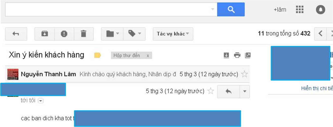 Dưới đây là một số ý kiến của khách hàng về dịch vụ của chúng tôi. Thông tin cá nhân của khách hàng đã bị bôi đen để đảm bảo tính bảo mật. Nếu cần xác thực, chúng tôi sẽ gửi mail cho các bạn.