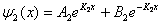 Hàm sóng ψ2 phải xác định khi x≥0. Điều đó cũng có nghĩa là cho dù x tiến đến vô cùng thì ψ2 cũng phải xác định. Nhưng khi thế x=∞ vào biểu thức của ψ2 trong (2.43) thì số hạng thứ hai sẽ bằng vô cùng, dẫn đến cả hàm sóng cũng bằng vô cùng. Muốn điều này không xảy ra thì hệ số B2 phải bằng 0. Hàm sóng lúc này được viết là