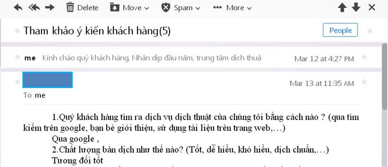 Dưới đây là một số ý kiến của khách hàng về dịch vụ của chúng tôi. Thông tin cá nhân của khách hàng đã bị bôi đen để đảm bảo tính bảo mật. Nếu cần xác thực, chúng tôi sẽ gửi mail cho các bạn.